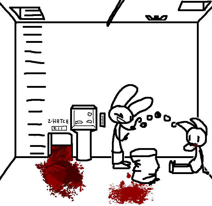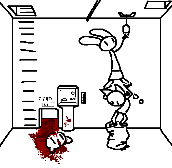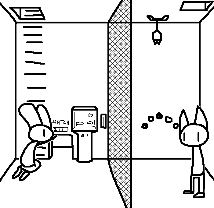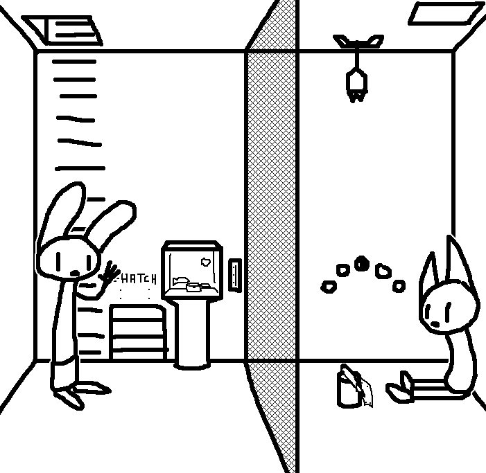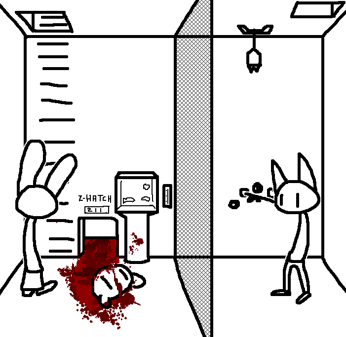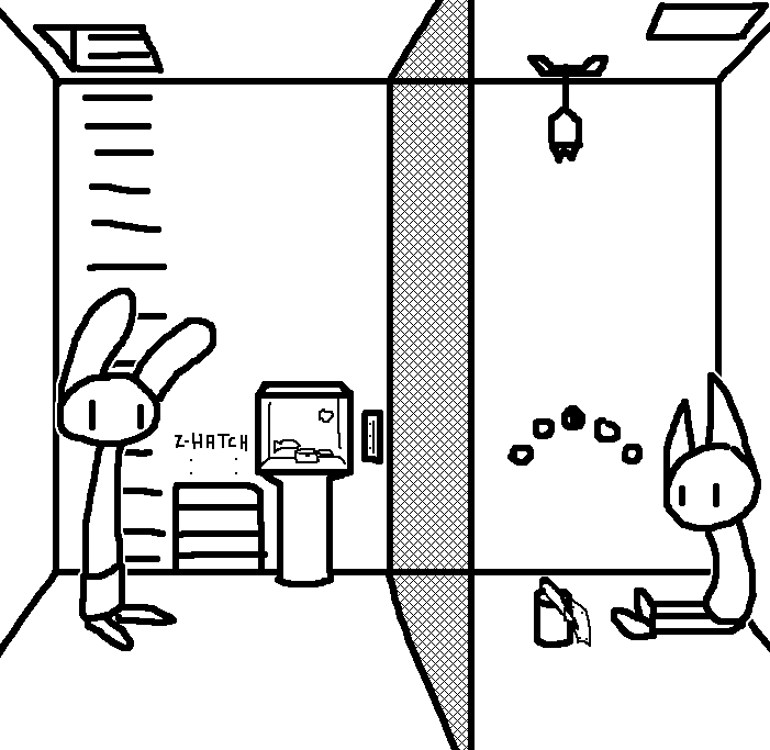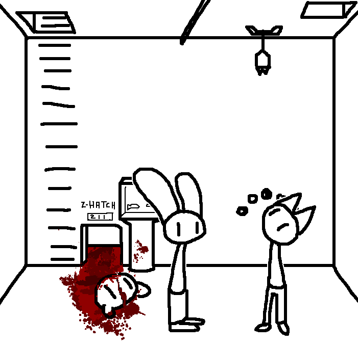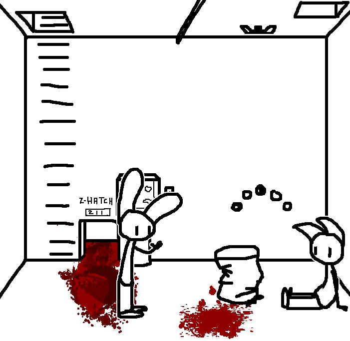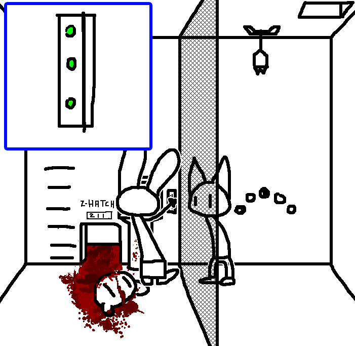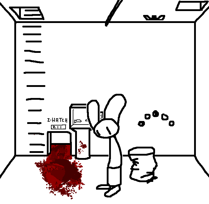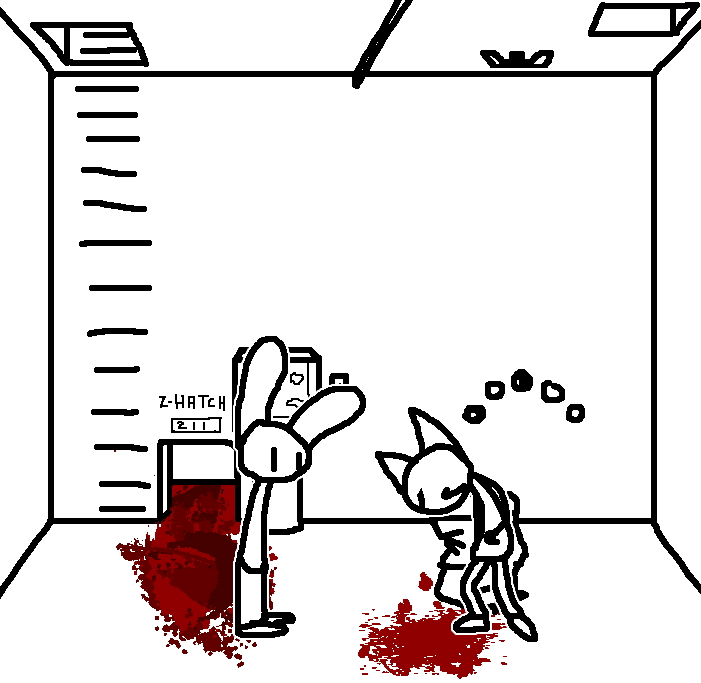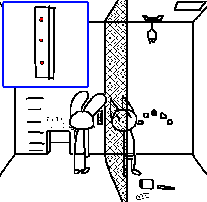 Close hatch, bar it shut with the caneshovel.I think, for now, after closing the hatch, we should probably vacate this area. Nook may have unnatural strength. Water cooler.try and close the hatch cant? run like the god damned wind to storage, we'll get ace to fight himClose the hatch?