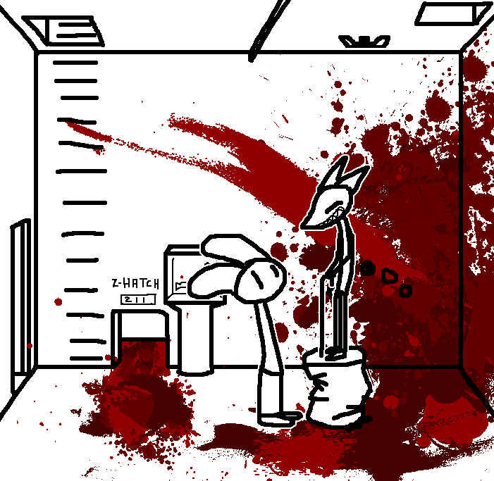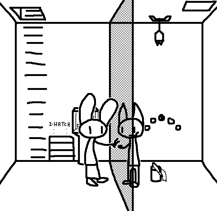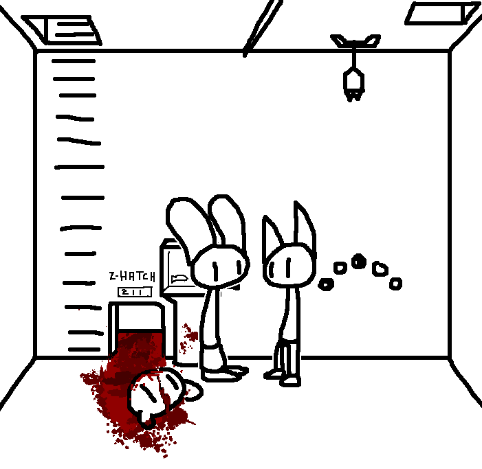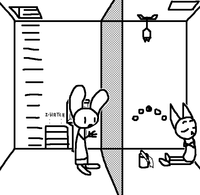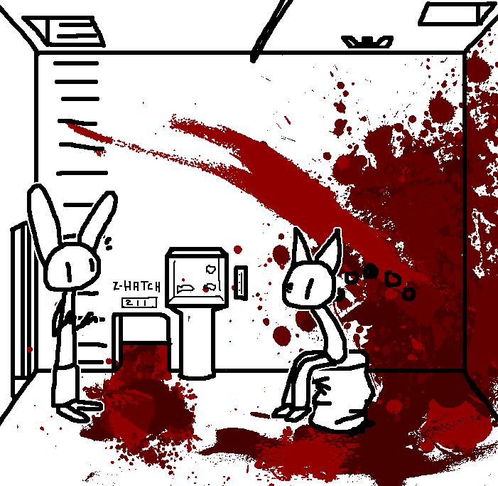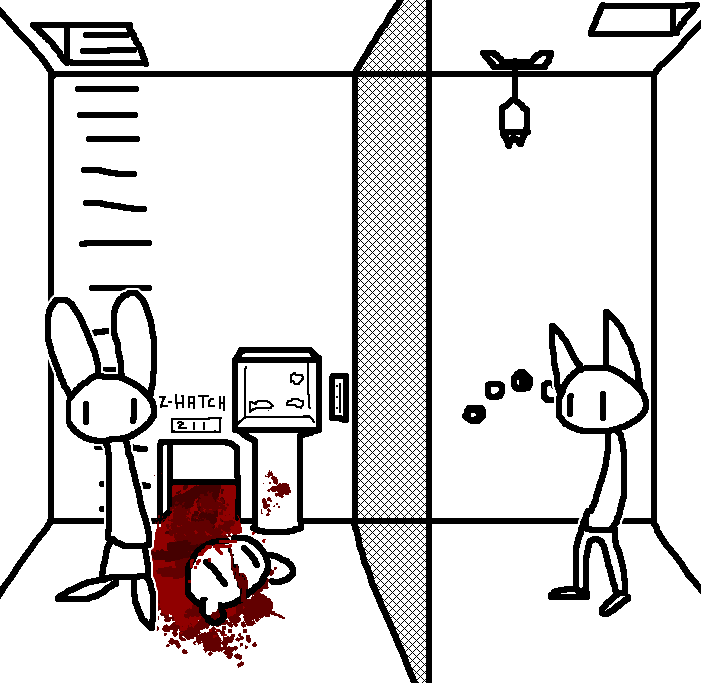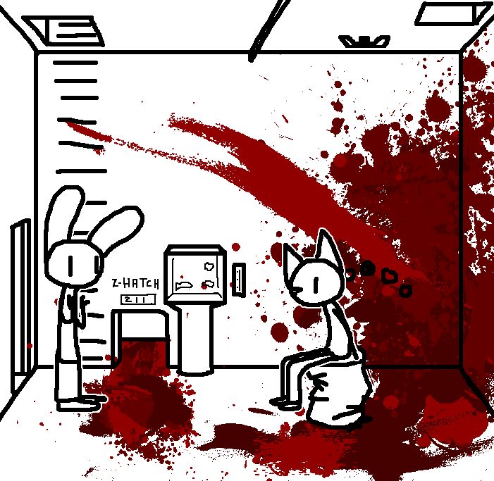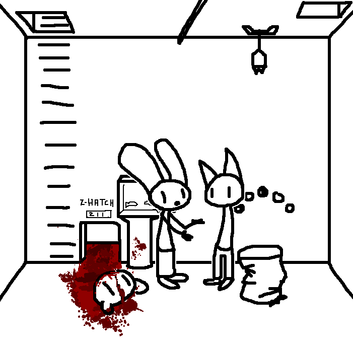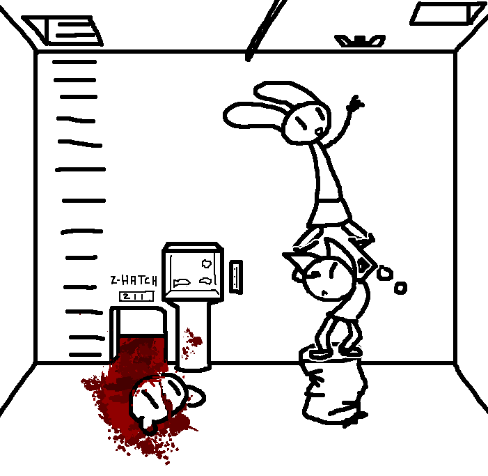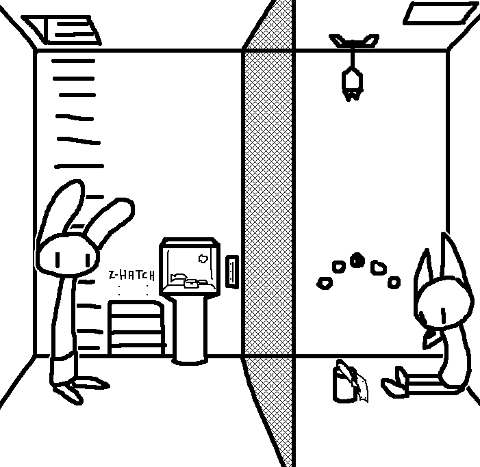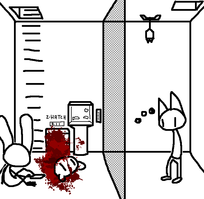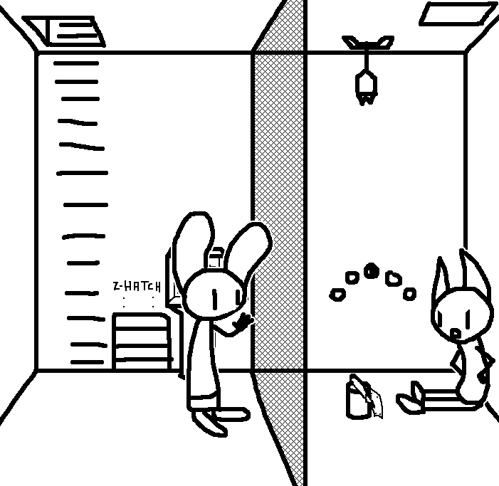 Close hatch, bar it shut with the caneshovel.I think, for now, after closing the hatch, we should probably vacate this area. Nook may have unnatural strength. Water cooler.try and close the hatch cant? run like the god damned wind to storage, we'll get ace to fight himClose the hatch?