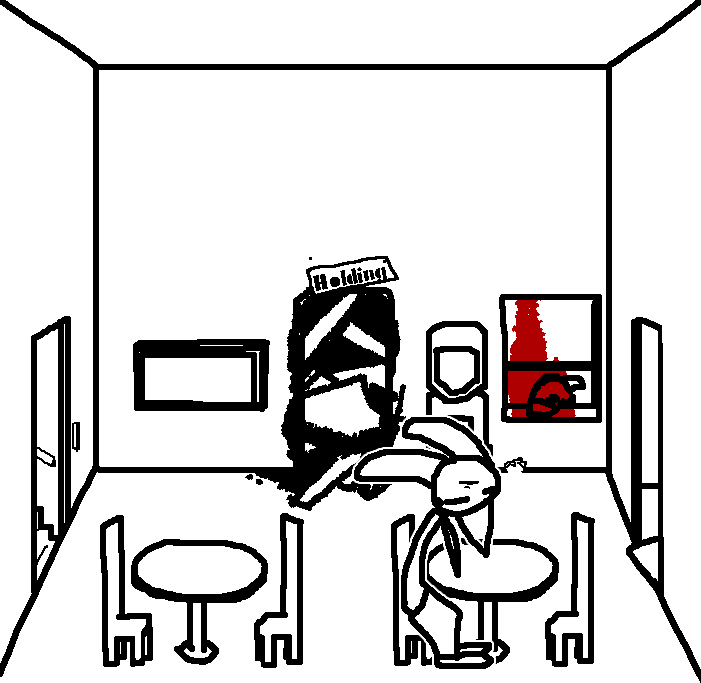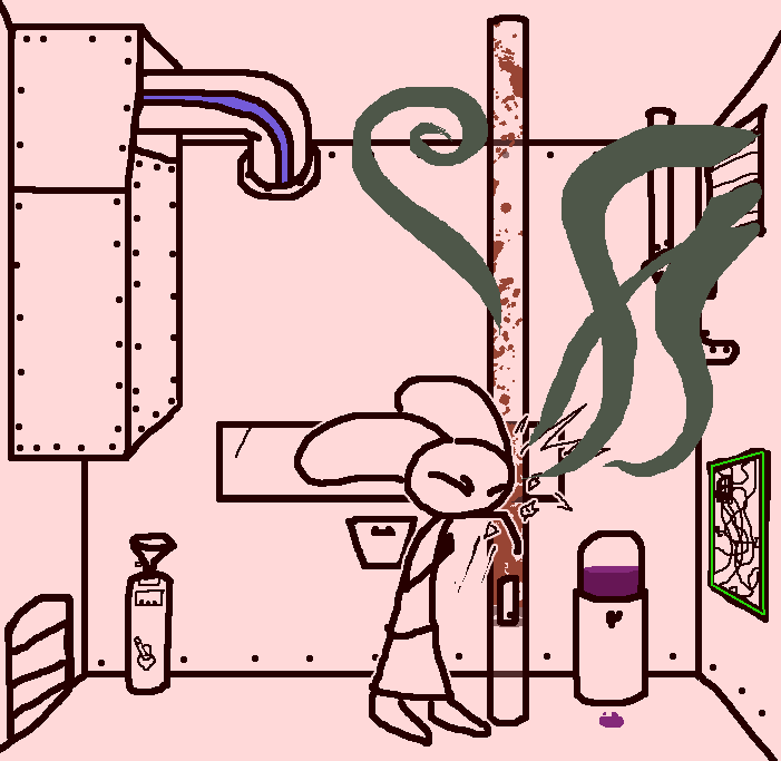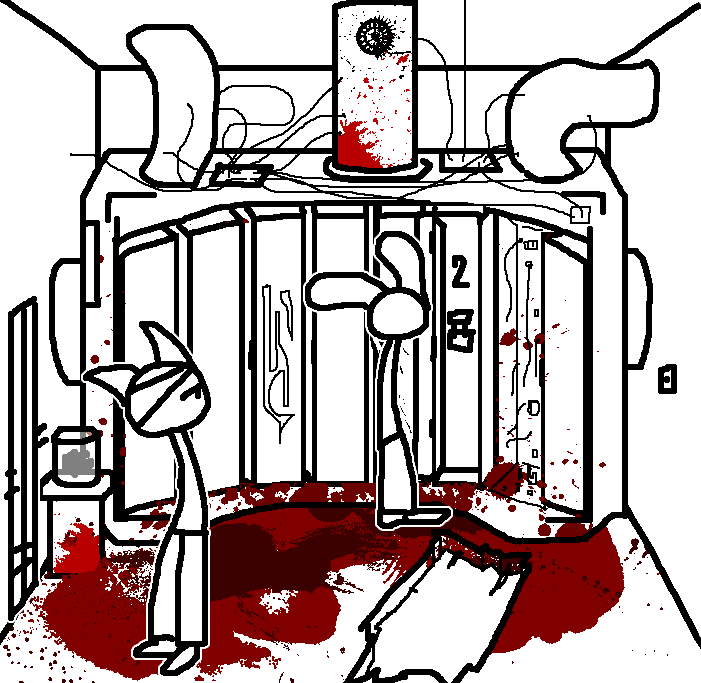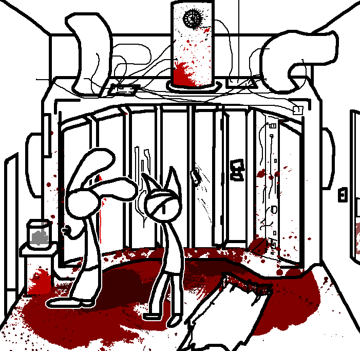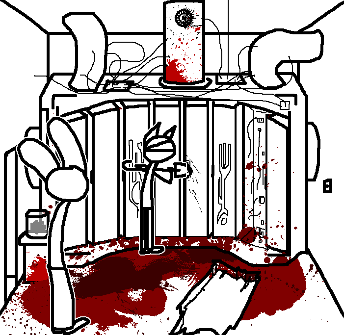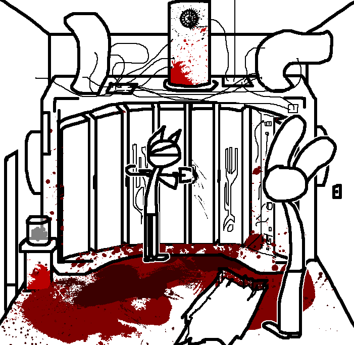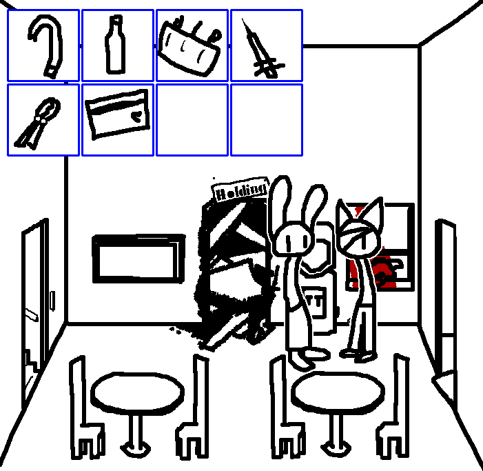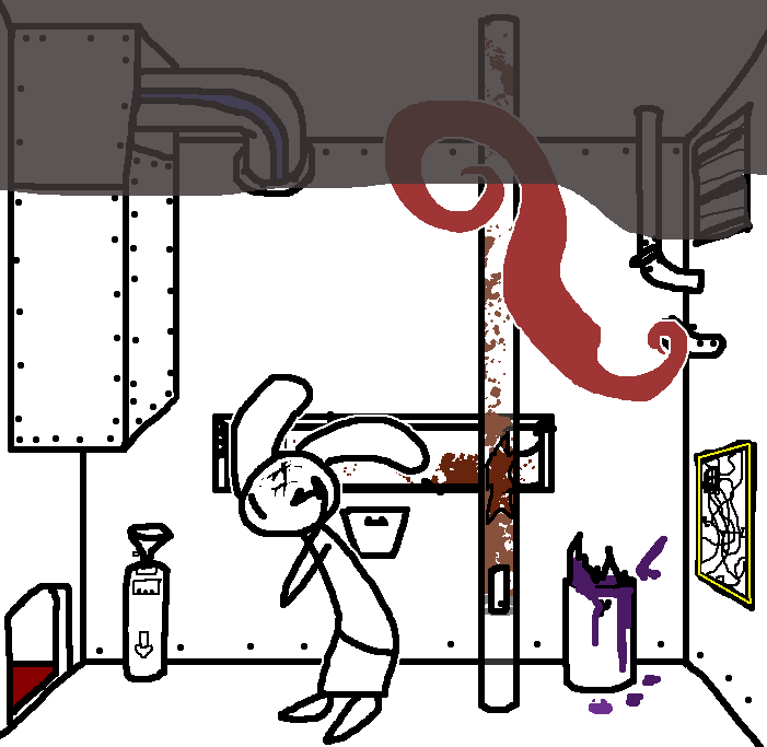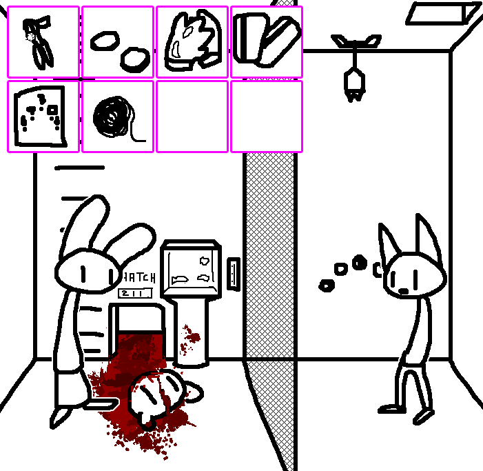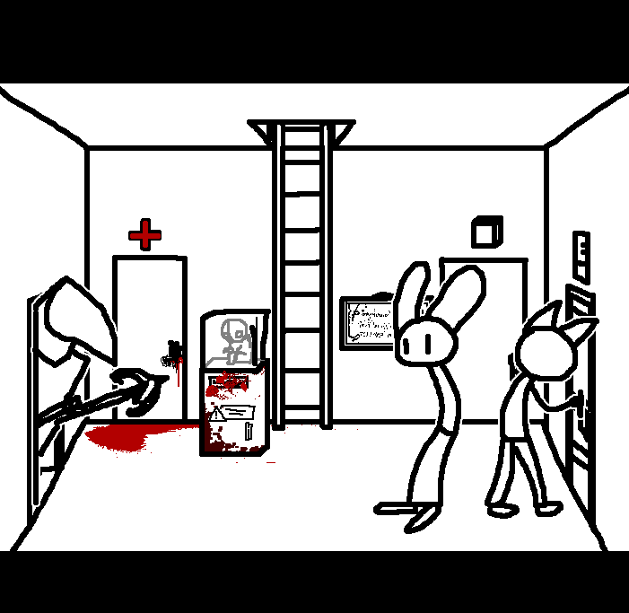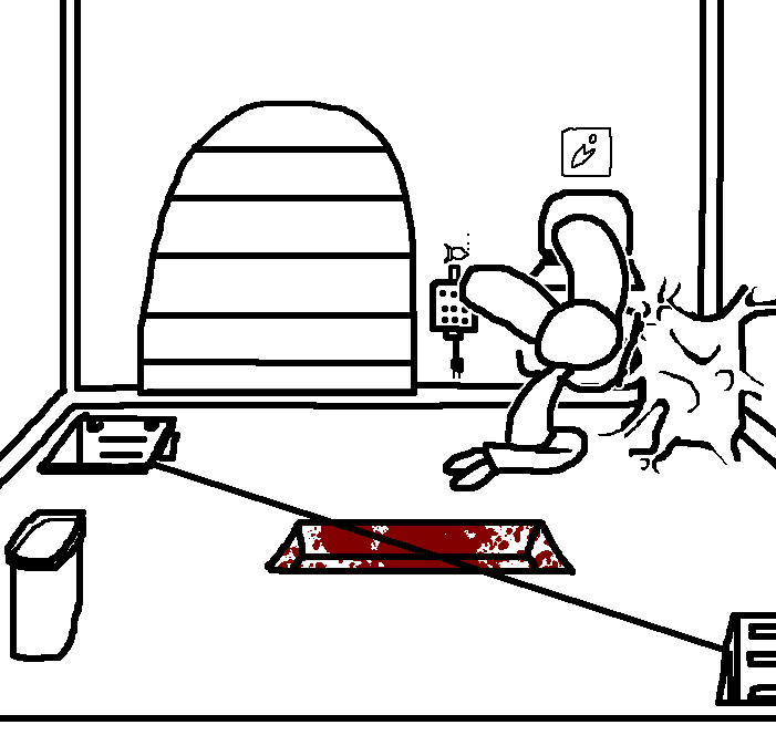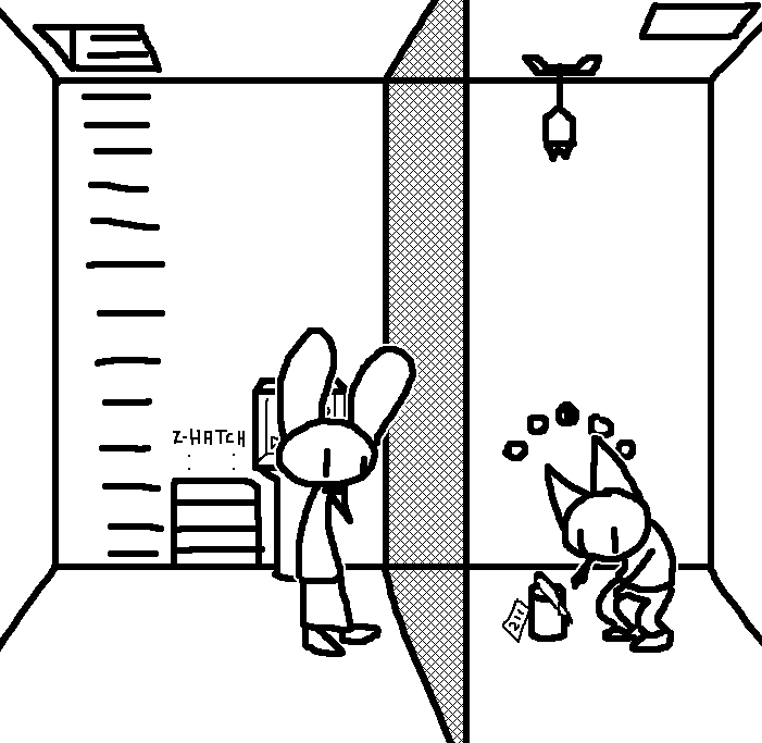 Close hatch, bar it shut with the caneshovel.I think, for now, after closing the hatch, we should probably vacate this area. Nook may have unnatural strength. Water cooler.try and close the hatch cant? run like the god damned wind to storage, we'll get ace to fight himClose the hatch?