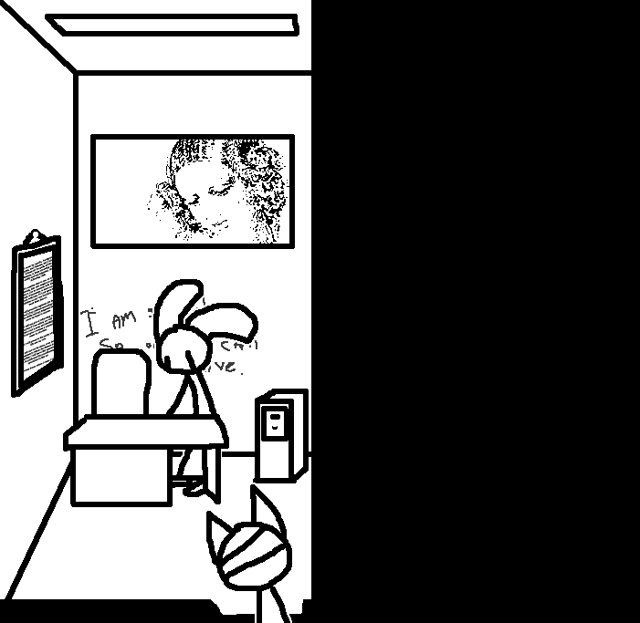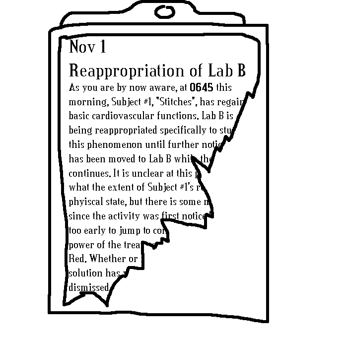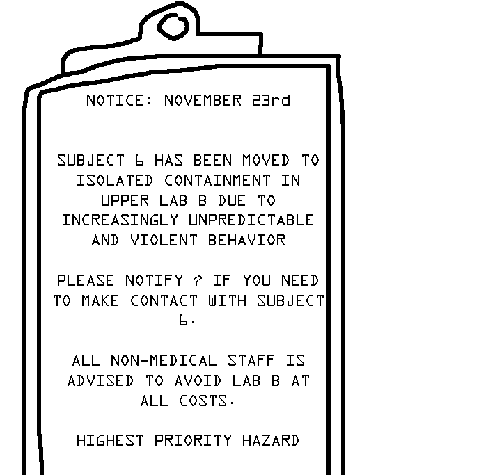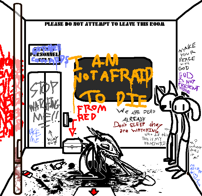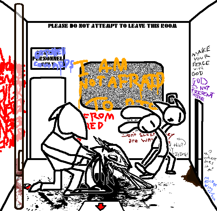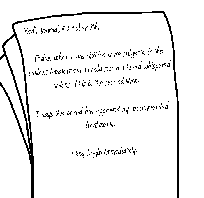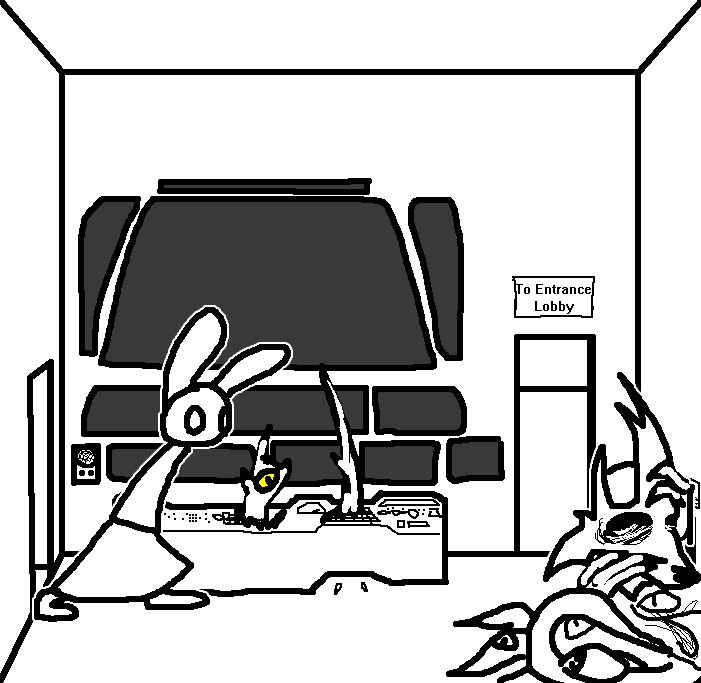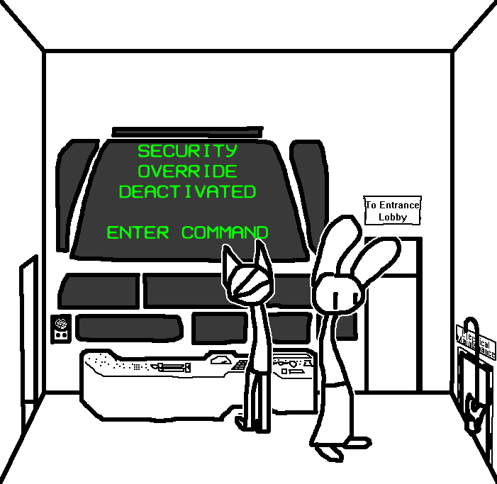 Yes, The third eye hurts to use... B.. but also sooo good. Deep inside.. like we want to fall in to the darkness.. and feel that feeling.. forever.. and never wake up.. ever. Good idea. Does.. the door to the lobby.. open? Oh God.Read the rest of the notes, then. Then try the door. Maybe the security override or whatever is found there.Hatch is stuck, computer's broke, intercom is, uh, occupied. Go through the door.
