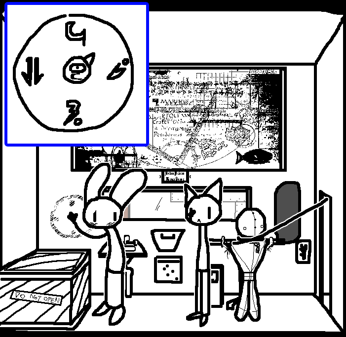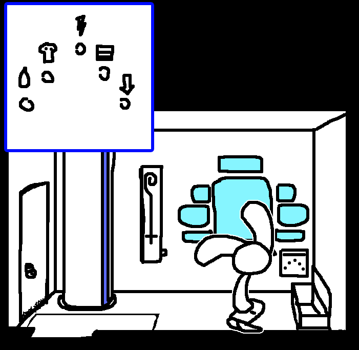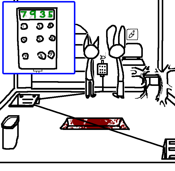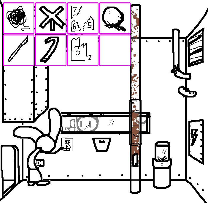 Button 1Tom hesitates, standing close to the grate... then presses button 1, not for a moment considering the diagram could have been coded based on the key sequence listed on the wall panel by the fishtank.