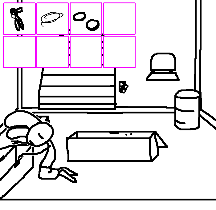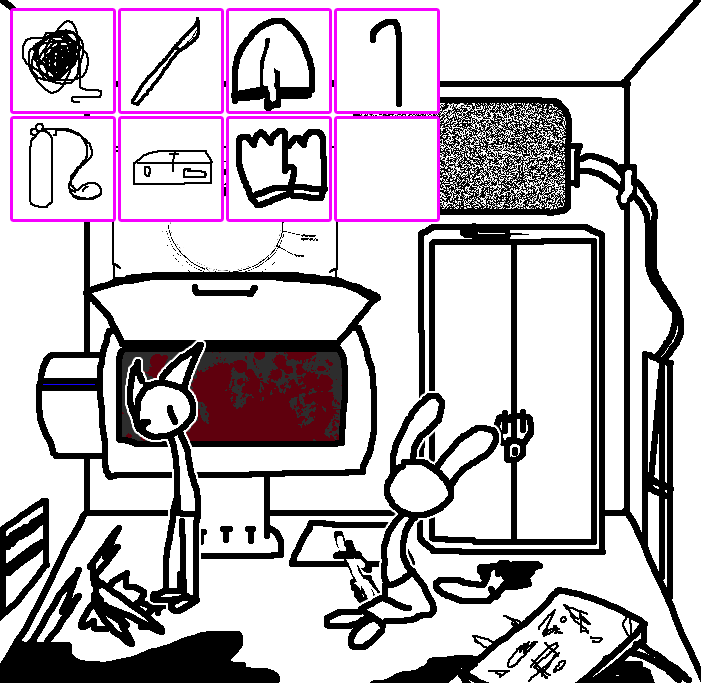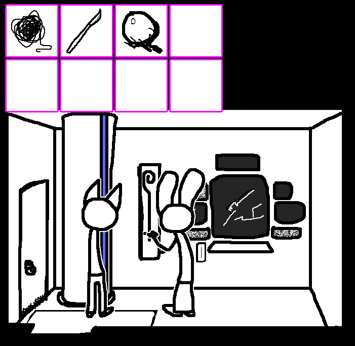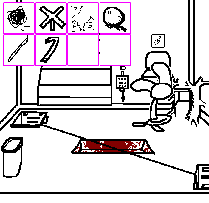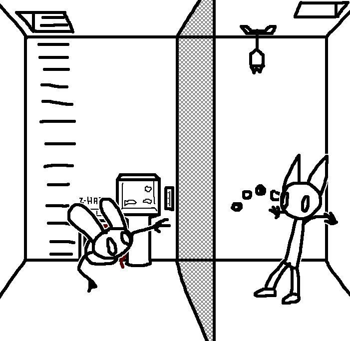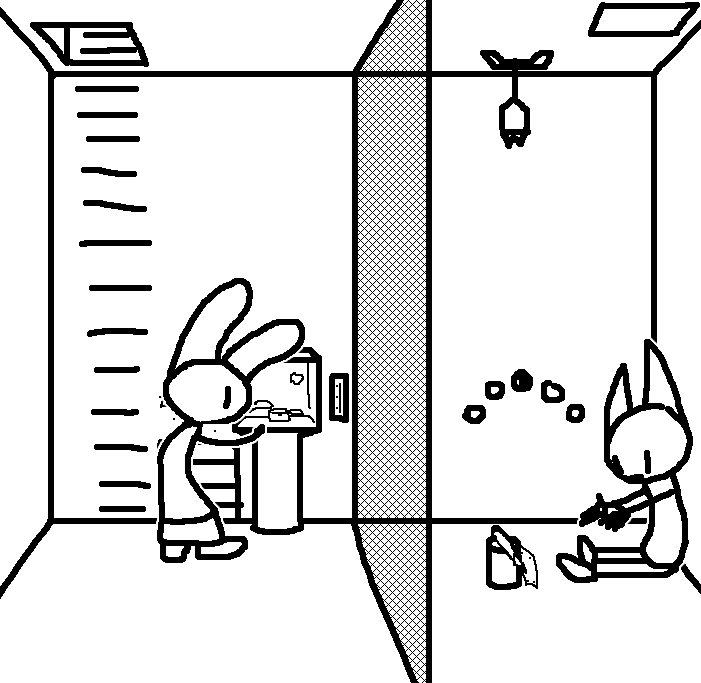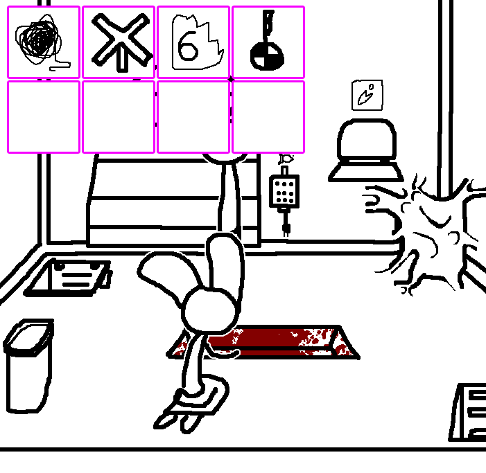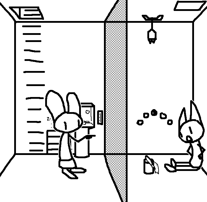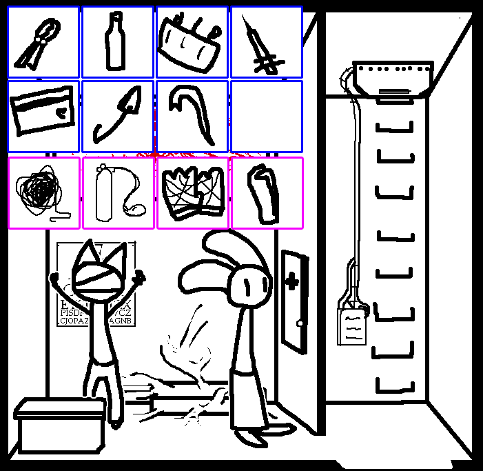 Oh yeah, forgot that's how we got the diagram well at least I was right =3 Lets try to reach for th lever for now.OKAY. TOM HAS A LETTER OPENER AND A TIN CAN AND THE METAL PLATE IN HIS CELL. Again, try to see if ruby can reach for the lever on tom's ceiling through the trap door..