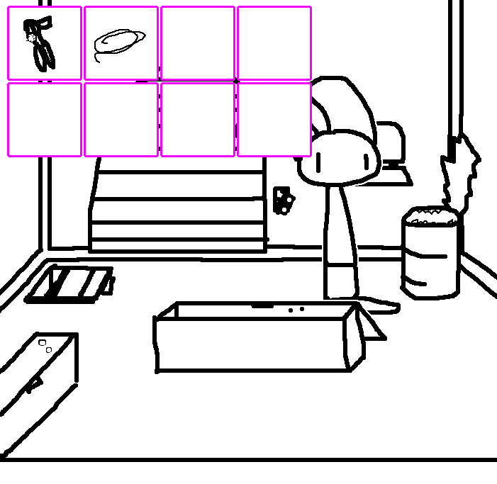 READ NOTE. Take screwdriver. Inspect desk for drawers. Do not use eye.