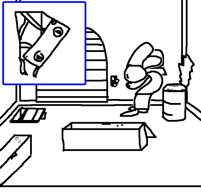Try and combine each of the items with each other in any and all ways that would not destroy any of the items.Using one COIN, the RUBBER GLOVES, the TINY CHEST, and a piece of the BUTTON DIAGRAM, Ruby fashions together the JUNKOTRON MISSILE LAUNCHER! This baby could break through a steel wall!