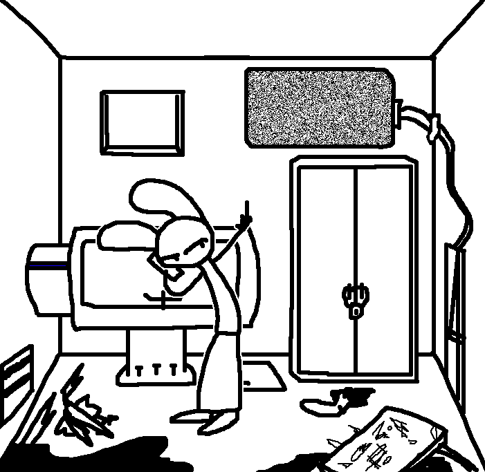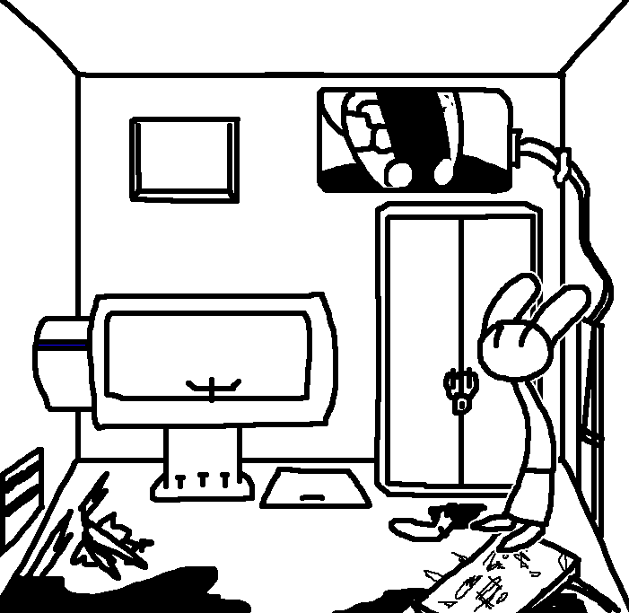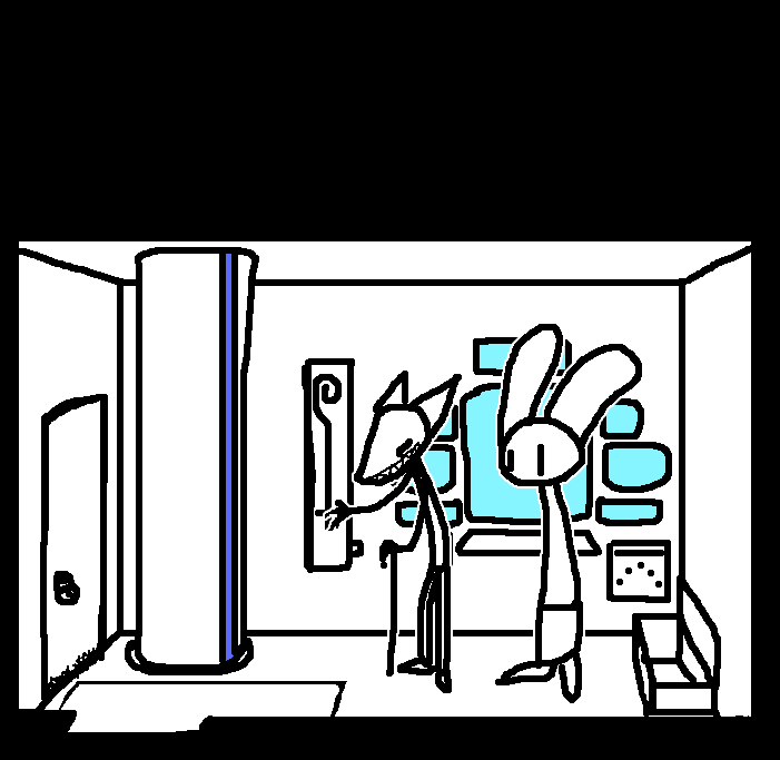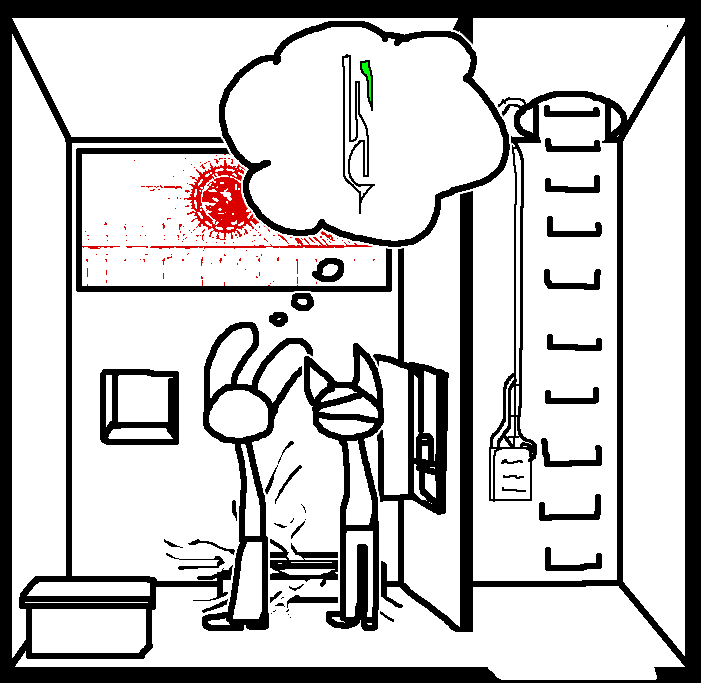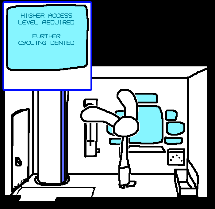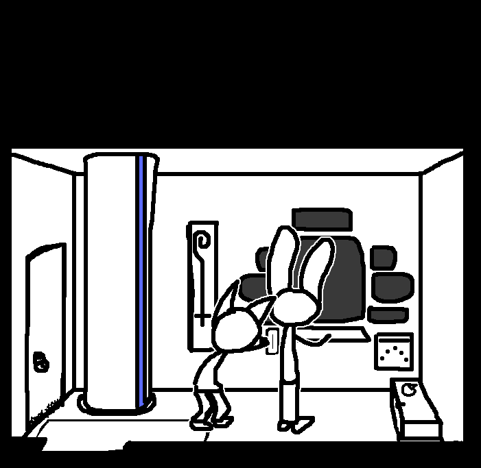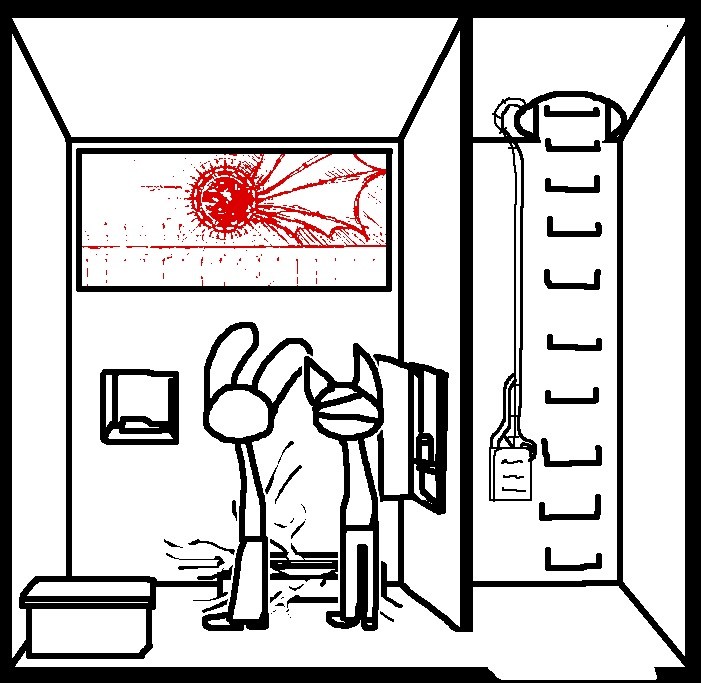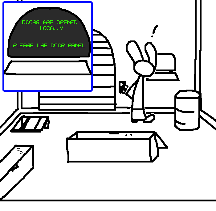 Intended to remove an extraneous piece of clothing for the sake of hand-protectionRuby doesn't have enough clothing on for anything to really be considered extraneous.Enter command, "open locker"That seemed to do something. A soft click comes from the other locker.While we're at it, enter command "sound horn"The console doesn't appear to recognize that command.enter "open door".That got a response, but unfortunately the results weren't what Ruby had hoped for.