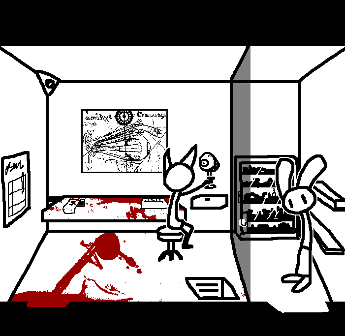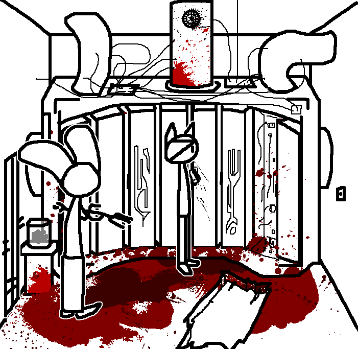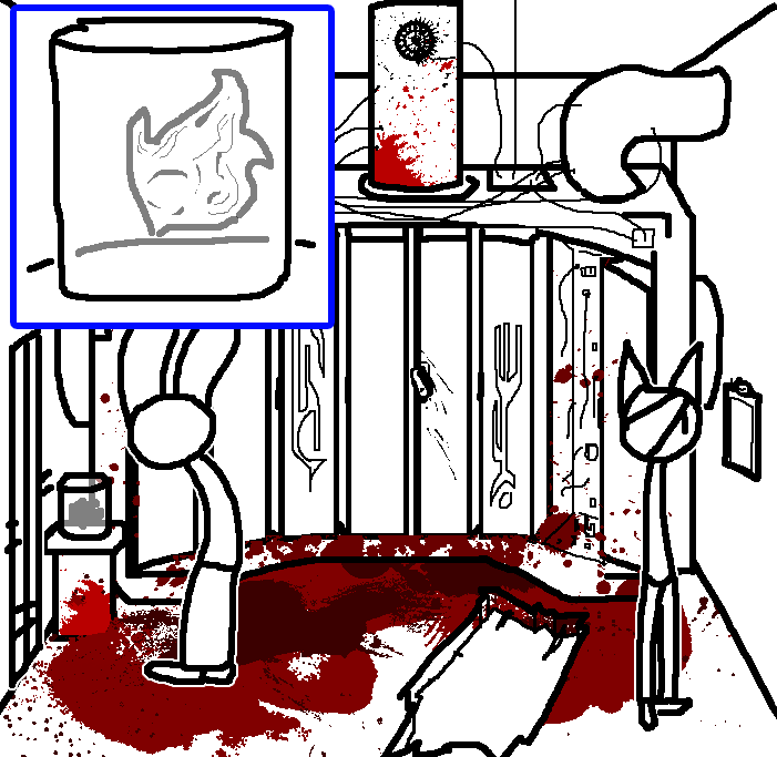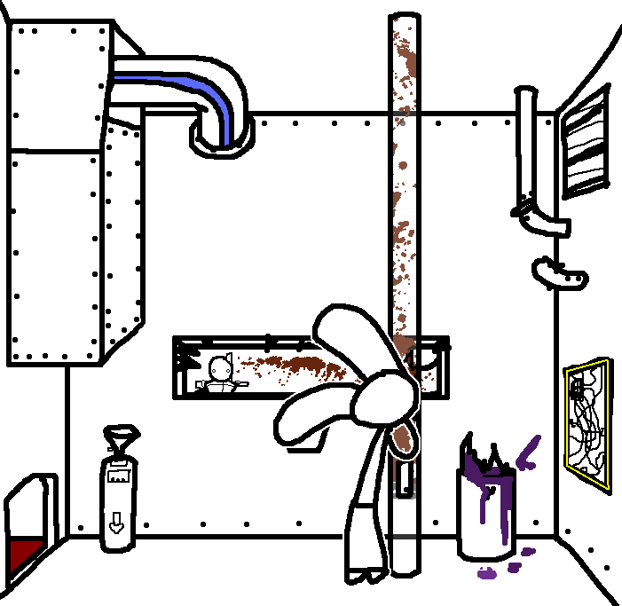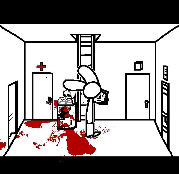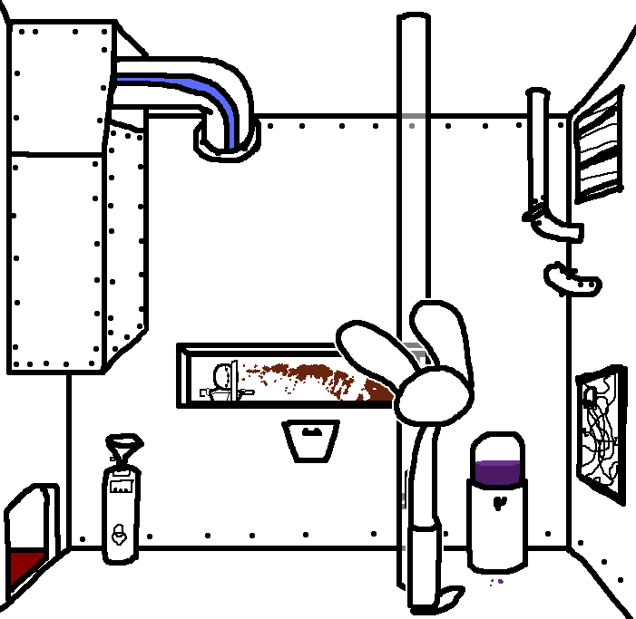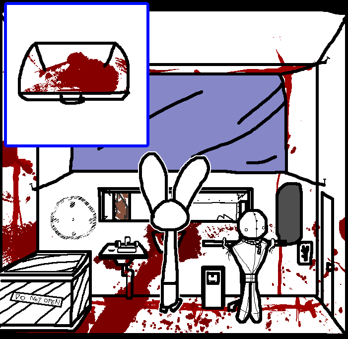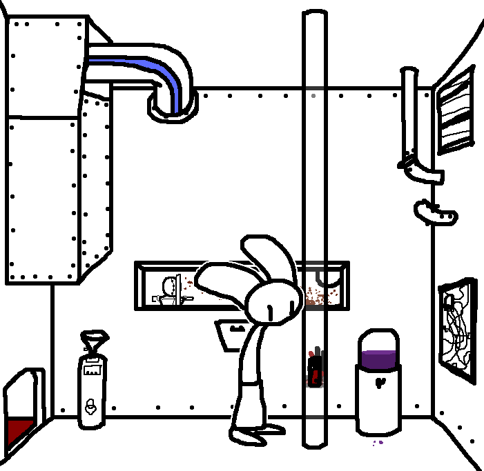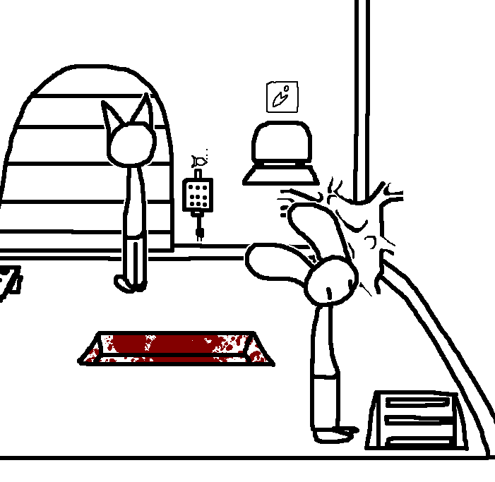 Hug Tom. If the danger's gone, now would be a good time to investigate Red's room again: Judging from how Ace can move around, the debris there should've been cleaned and allow movement for Ruby and Tom as well.Inspect the blood on the fan, please.Investigate the blood on the fan in the meantime.I see blood on one of the fan blades, inspect it.CROWBAR + LOCKCheck the plant again. Emobird might have left something.