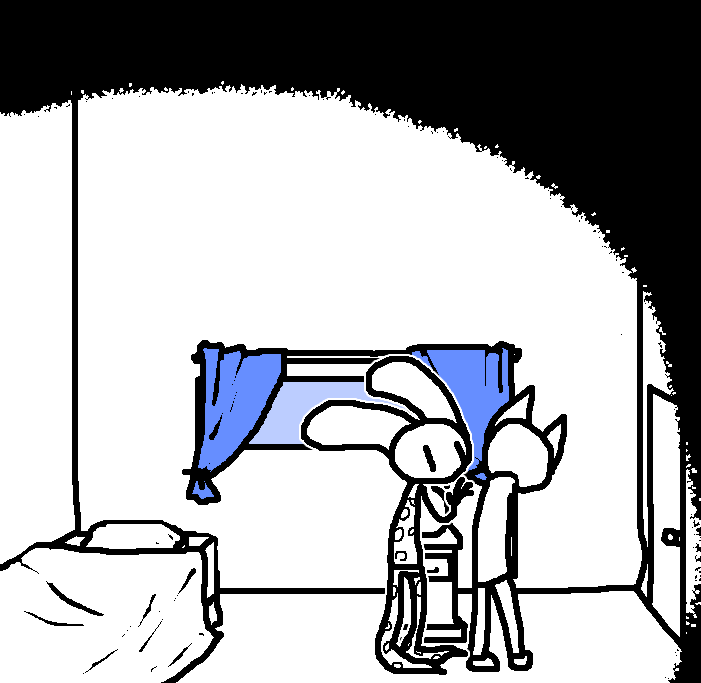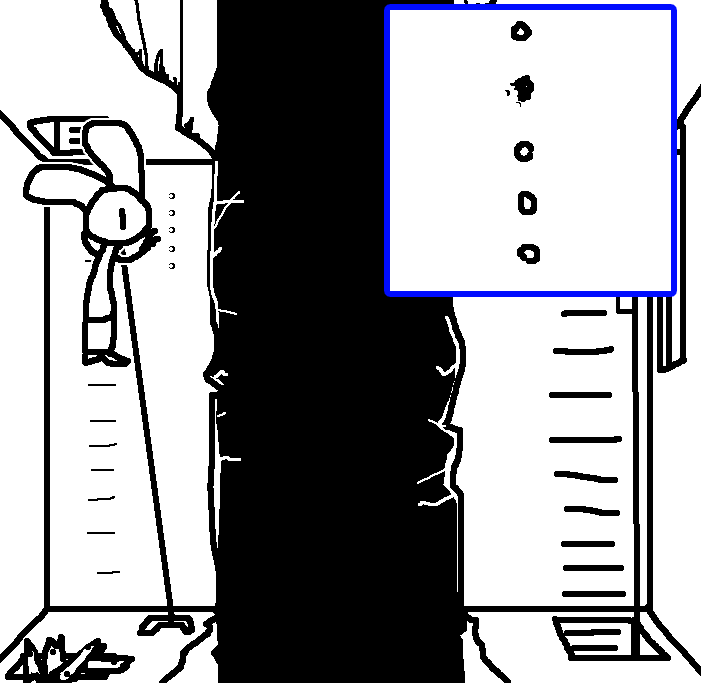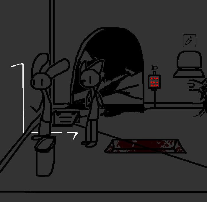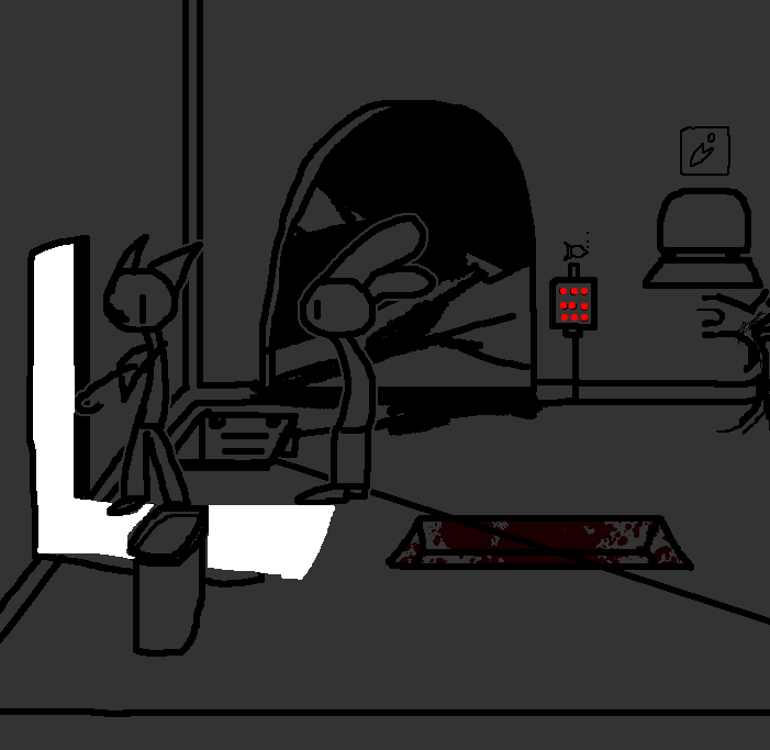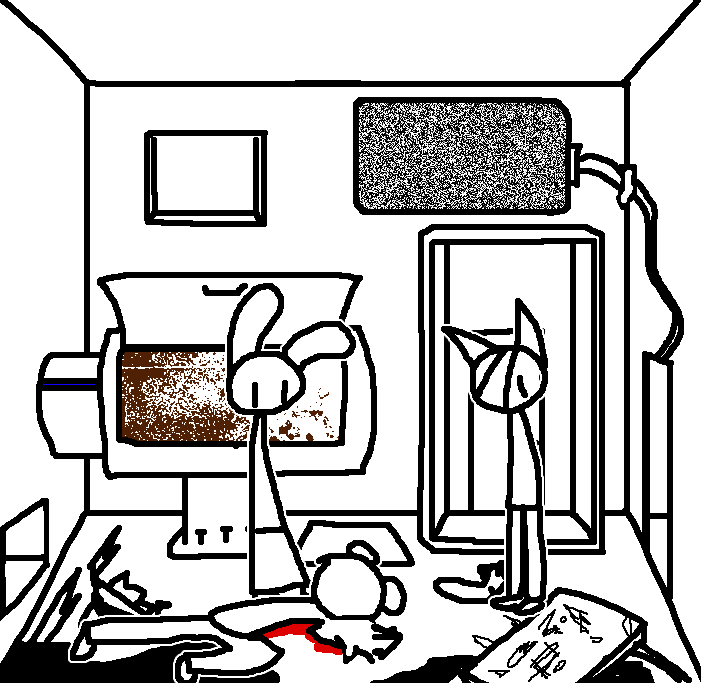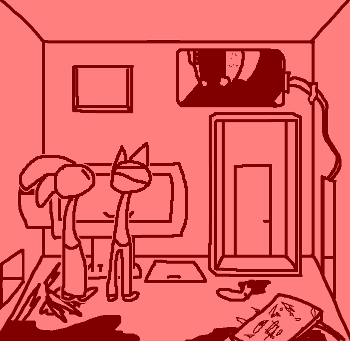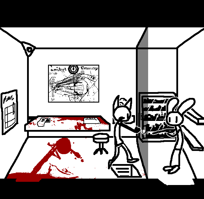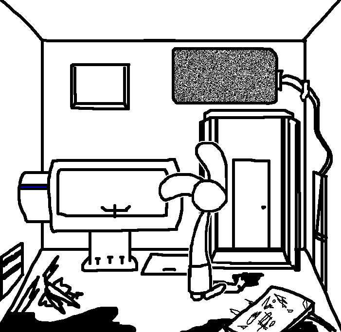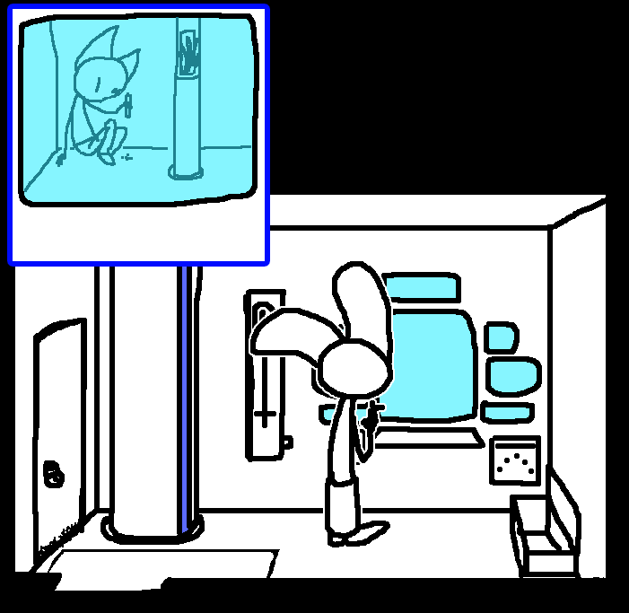 Hug Tom. If the danger's gone, now would be a good time to investigate Red's room again: Judging from how Ace can move around, the debris there should've been cleaned and allow movement for Ruby and Tom as well.Inspect the blood on the fan, please.Investigate the blood on the fan in the meantime.I see blood on one of the fan blades, inspect it.CROWBAR + LOCKCheck the plant again. Emobird might have left something.