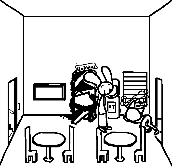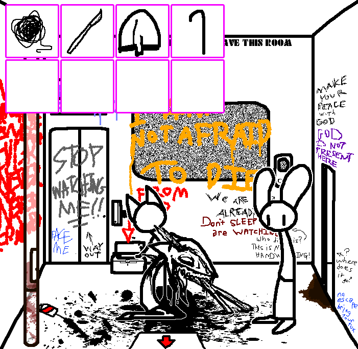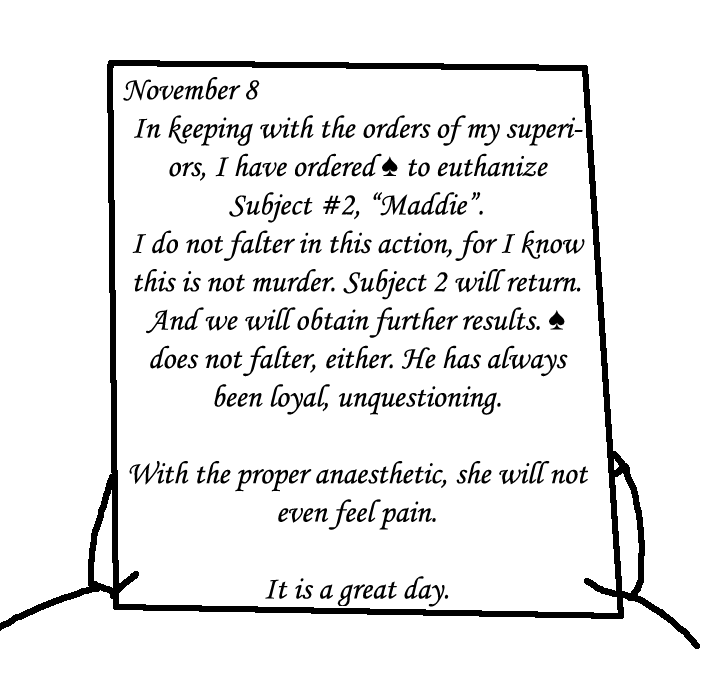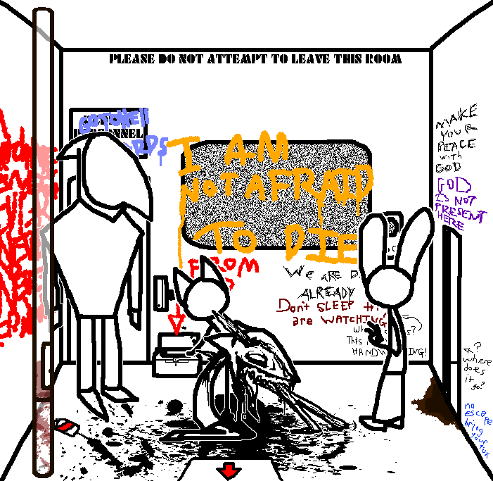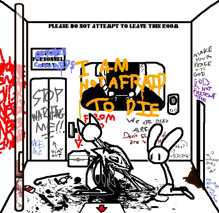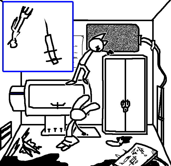 Tranq time for now, we'll come back soon.Do not worry Bella. We will be back to end your suffering. We will succeed this time. We will escape.No. No. No. Go. Leave her, go to the watercooler. She's lying.TOM: tranq her.i still say tranq her, watter cooler then kill tell her it's poison We get the gift, she feels no pain we escape GOOD END