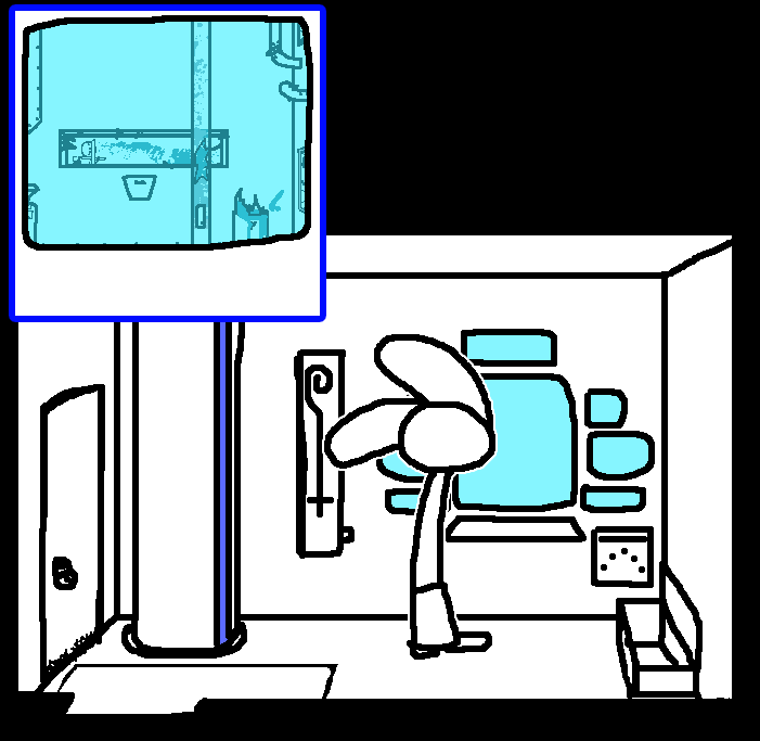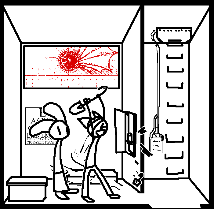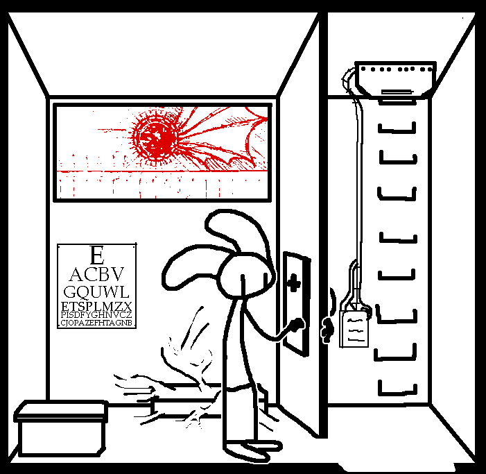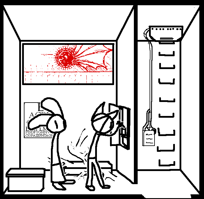 MEDLAB eye chartEither unscrew medlab poster or Unscrew vent or Check on Stitches.