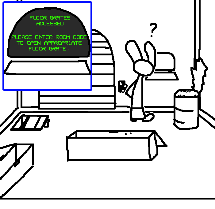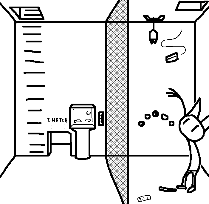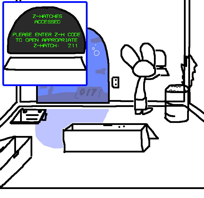 Go back upstairs and type 'access hatch 211' or any variation with 211 in it changing the 2 to 5 or changing the 1's to I's.Go upstairs and enter "open z-hatch 211" into the terminal.