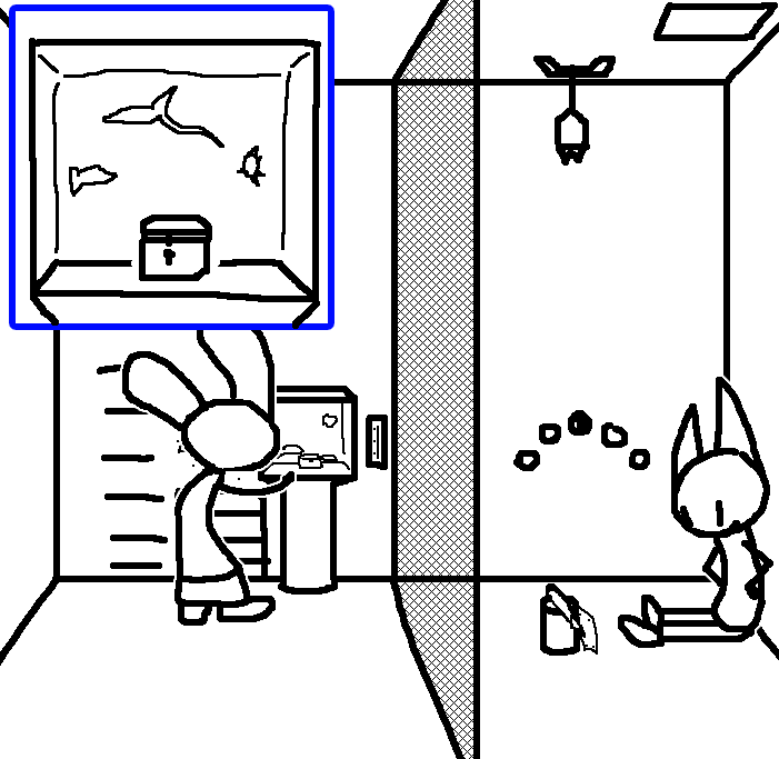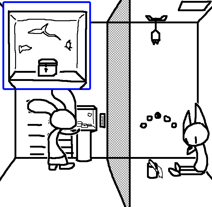 Grab treasure, then dump aquarium on Tom.
