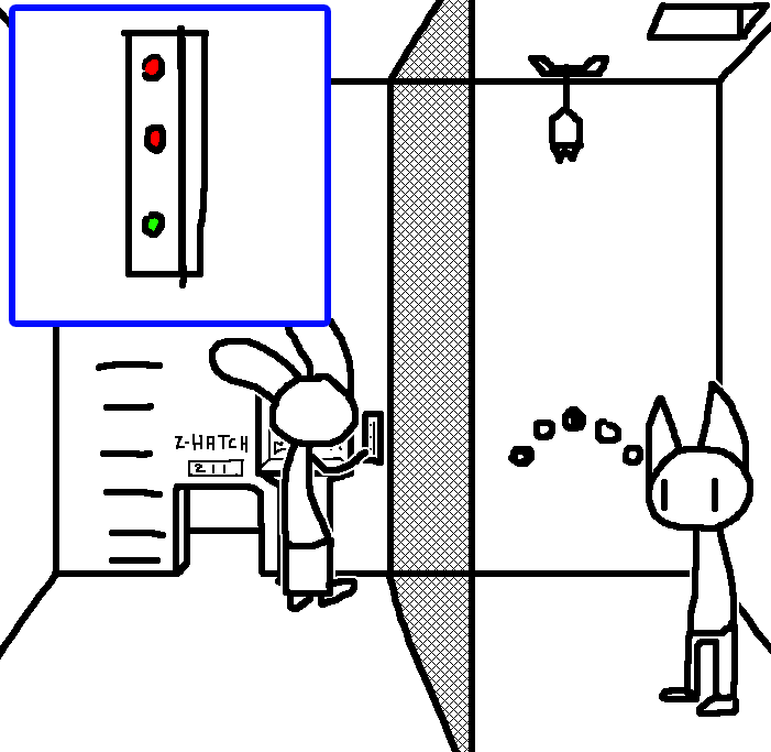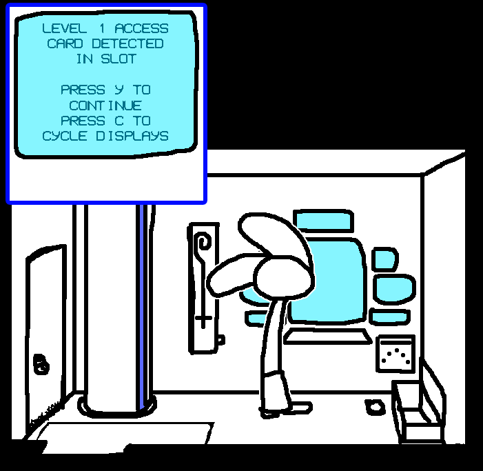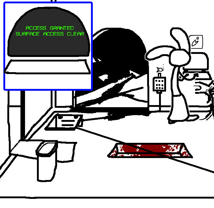 Look outside, see how far it is to the surface. Also, see if any predatory fish are visible.enter "open access shaft 017"Using the number on the plaque outside as a reference, Ruby attempts to try opening the bars to the access shaft via the computer terminal once more.